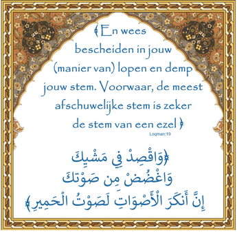 ﴾"En wees bescheiden in jouw (manier van) lopen en demp jouw stem. Voorwaar, de meest afschuwelijke stem is zeker de stem van een ezel” ﴿ Loqman:19